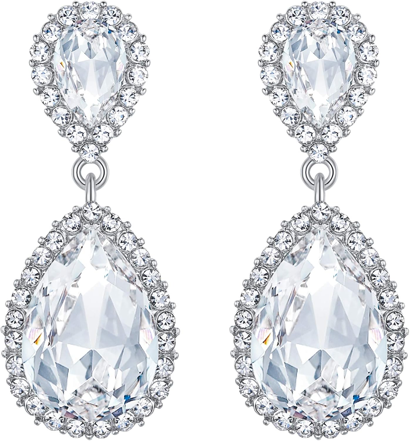 EVER FAITH Women's Austrian Crystal Wedding Tear Drop Dangle Earrings