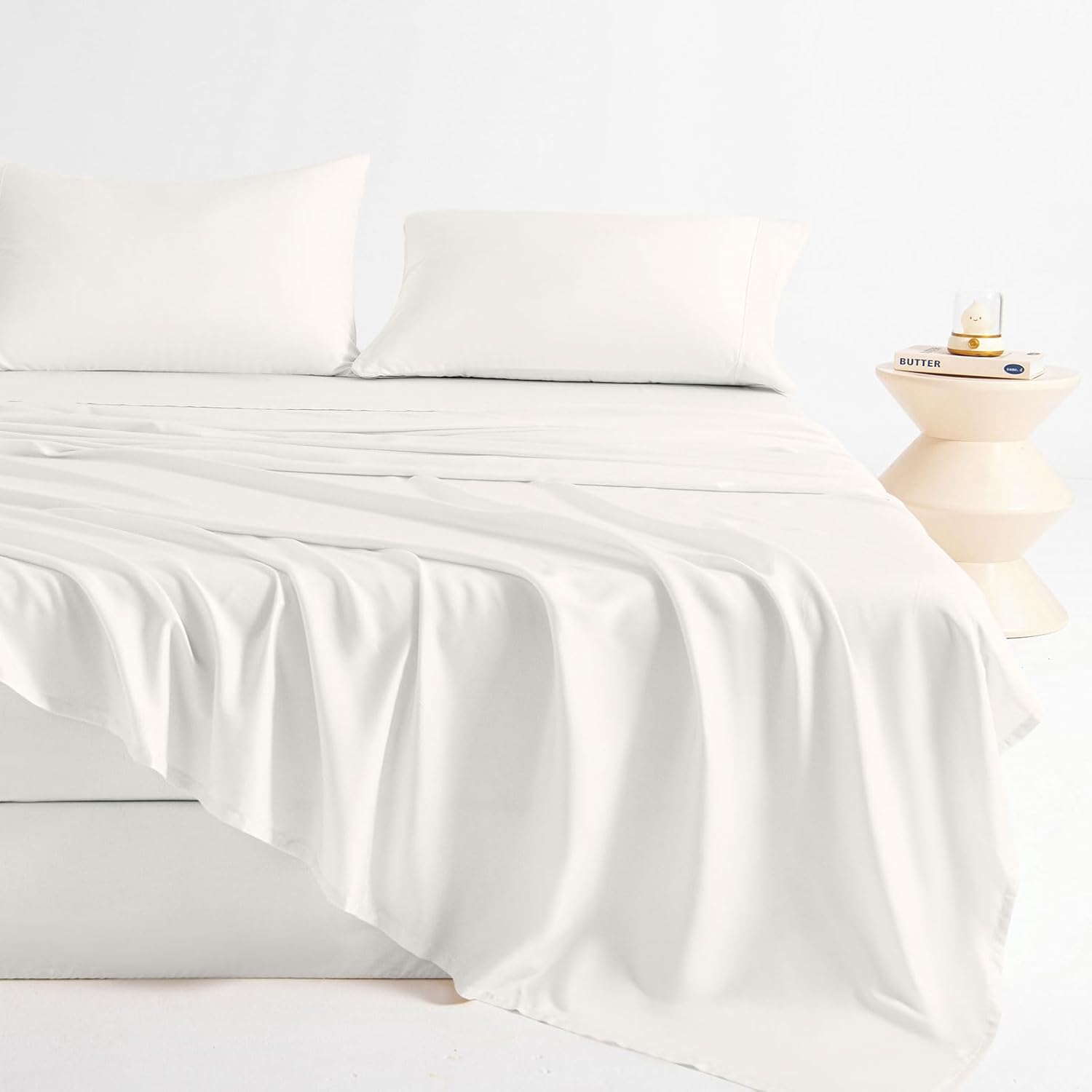 - All-Season Adaptive Comfort: Experience year-round temperature control with natural thermoregulating properties, proven to feel 3-5°F cooler than traditional cotton. The silky, low-friction surface mimics the glide of premium silk, while the 3D breathable weave amplifies airflow to reduce humidity buildup by 60%. Ideal for hot sleepers, the sheets synergize with room temperatures (72-78°F) to amplify cooling efficiency by 40%.