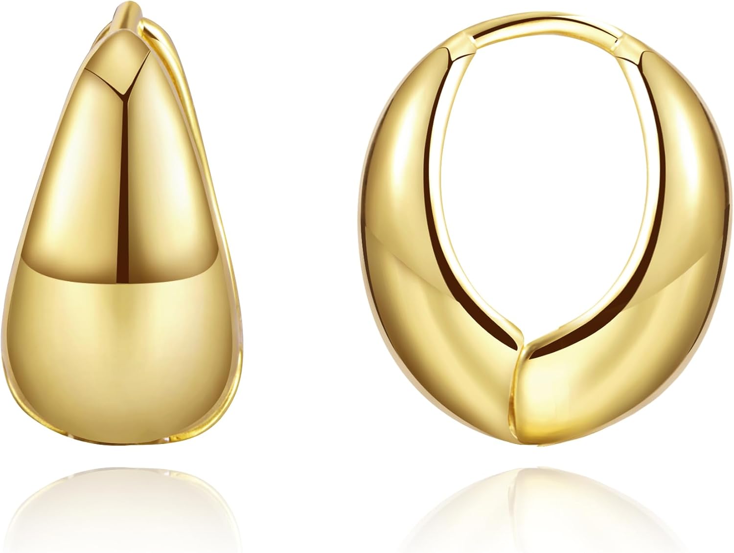 Chunky Gold Thick Hoop Earrings for Women, 18k Gold Plated Lightweight Hypoallergenic Huggie Hoops, Trendy Jewelry for Women