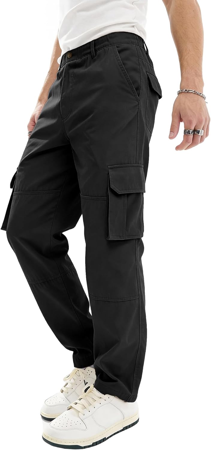 PLEPAN Mens Casual Straight Leg Stretch Cargo Pants Lightweight Relaxed Fit Drawstring Elastic Waist Pants with Multi Pockets