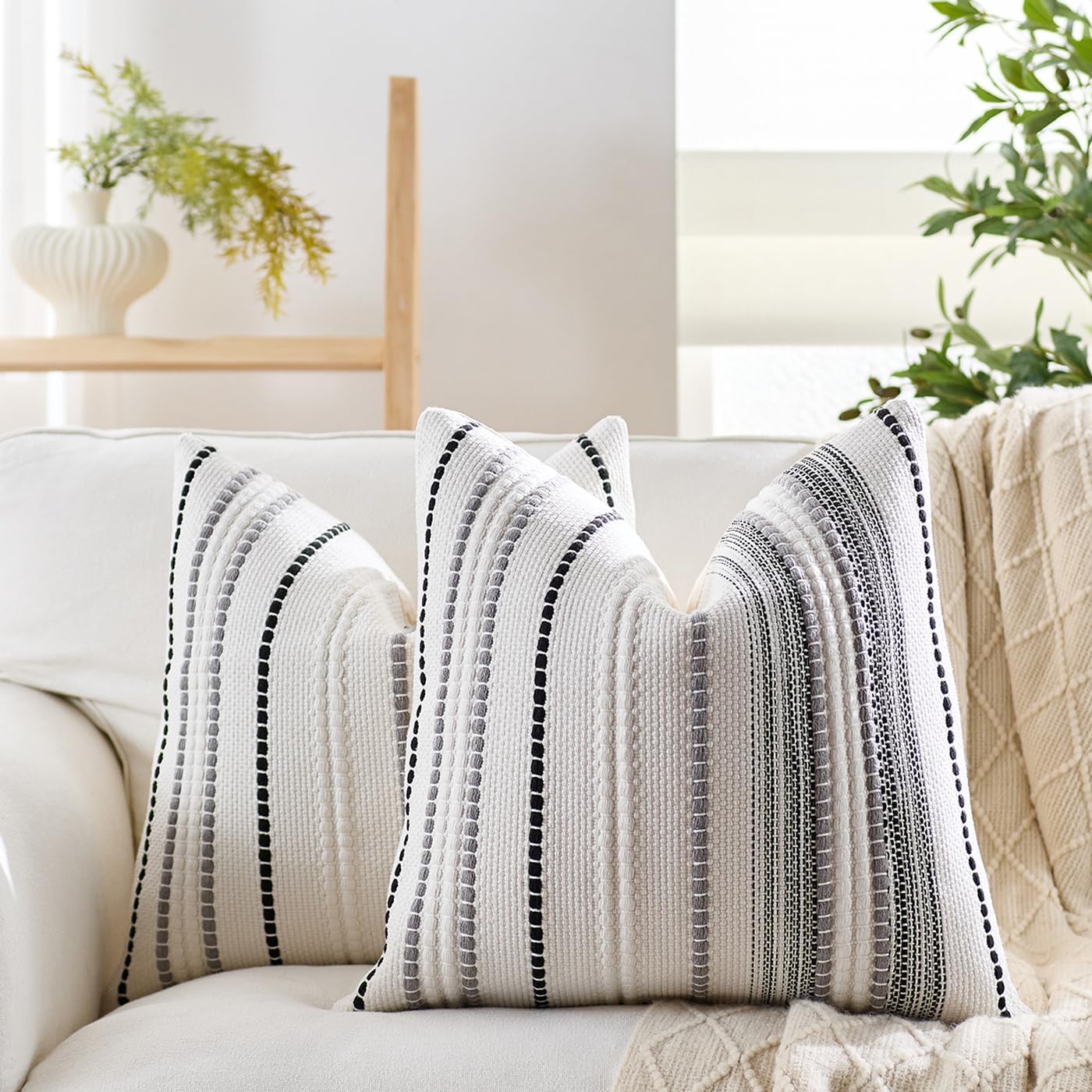 Boho Pillow Covers 18x18 Inch Black Grey White Striped Farmhouse Decorative Accen Throw Pillow Covers Boho Cushion Case for Bed Sofa Couch Home Decor Set of 2
