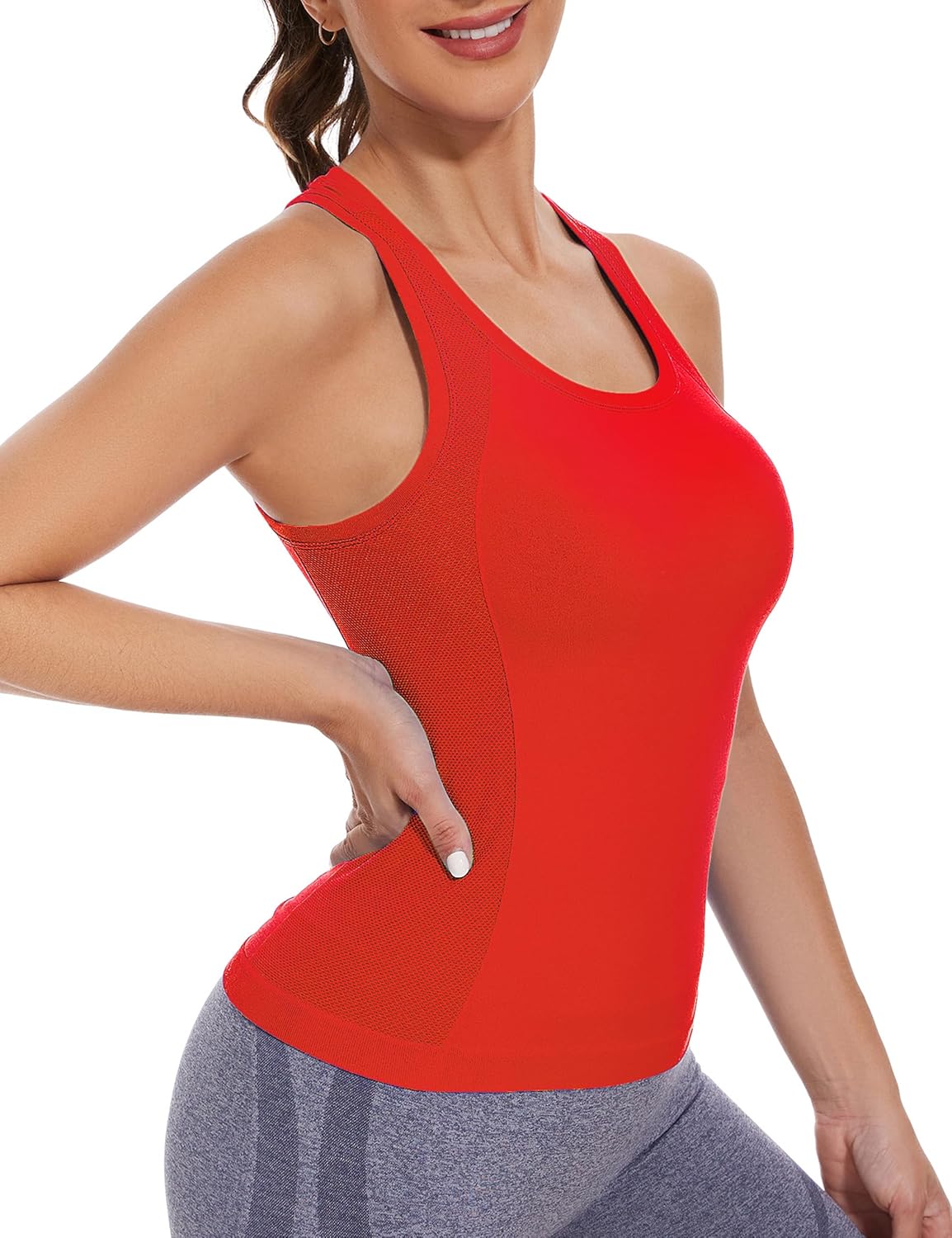MathCat Workout Tank Tops for women Racerback Tank tops Seamless Gym Tops Sleeveless Athletic Yoga Running Shirts