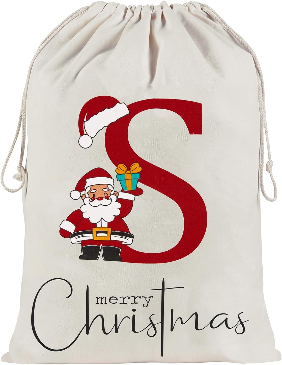 Asisca 27 x 19 Inch Christmas Santa Sack, Personalized Monogram Letter Christmas Gift Bag with Drawstring, Large Reusable Canvas Santa Bag for Gifts, Christmas Party Supplies(Letter S)