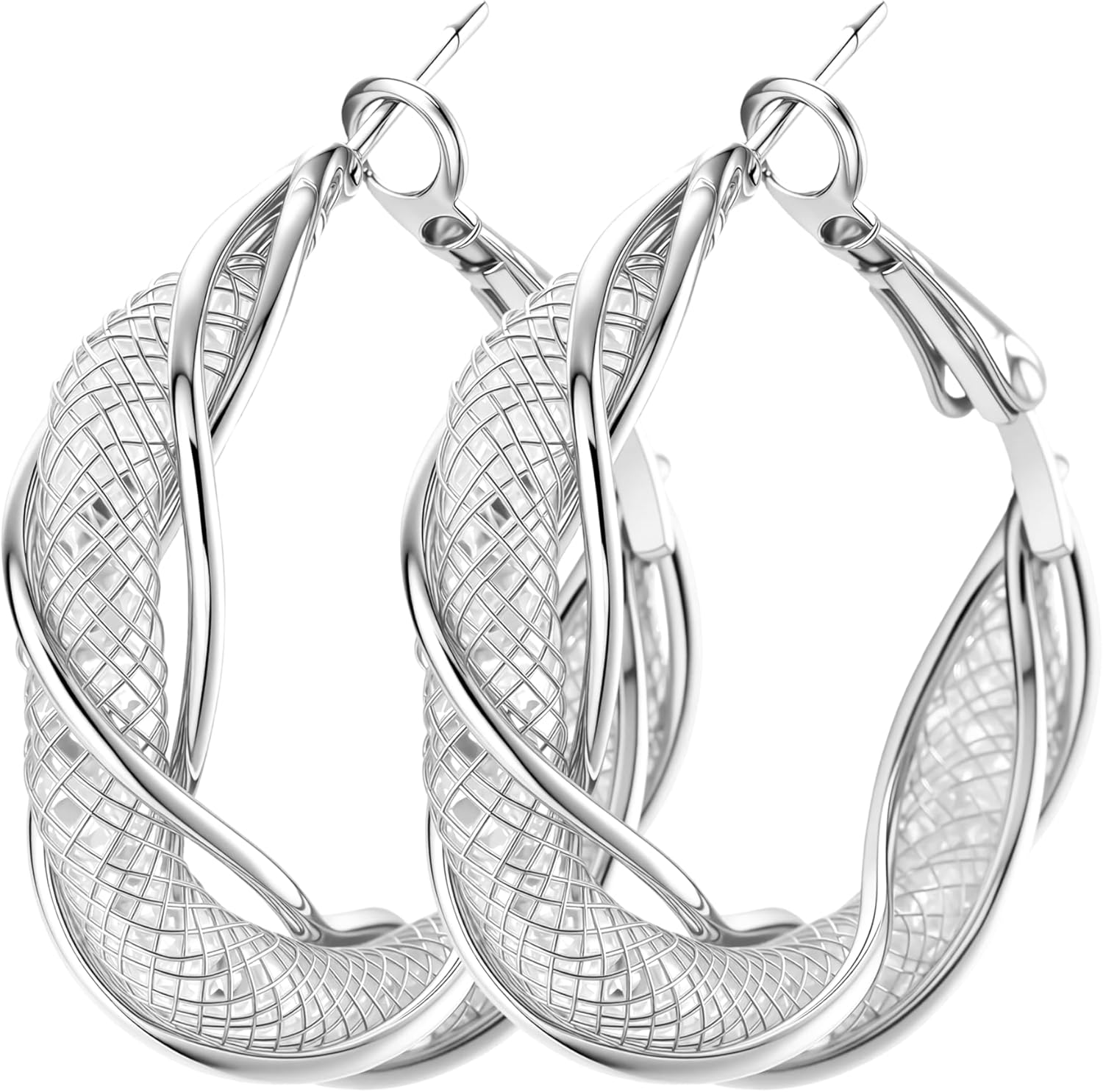 Silver Gold Plated Brass Filigree Earrings for Women - Stainless Steel 18K Gold Plated Teardrop, Twisted Dangle, Small Huggie Hoop with Rhinestone, Chunky Gold Earrings