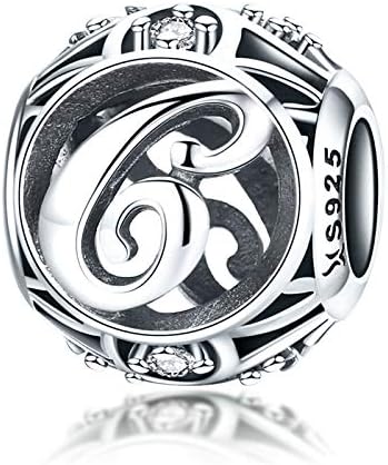 Letter Charms 925 Sterling Silver Initial A-Z Bead Charms for Bracelets Necklaces, Cubic Zirconia Alphabet Beads Personalized Gifts for Women