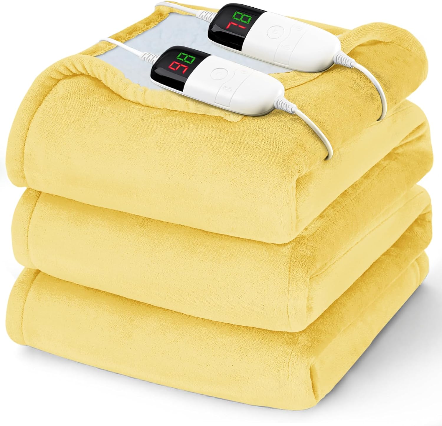 - 【10 HEATING LEVELS】: Find your perfect warmth about heated throw blanket with 10 different heating levels( 83℉-113℉) using LED controllers,which can intuitively display the temperature and customize the time(1/2/4/6/8 ).large heated blanket is designed with two zones, each with a LED controller, perfectly solving the different heating & timing requirements of electric throw blanket for adults.