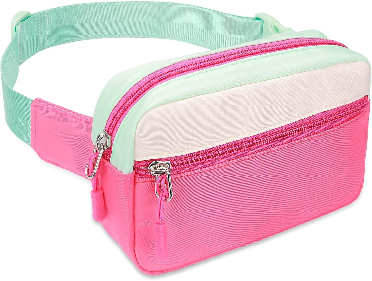 Small Fanny Pack for Girls Kids - Birthday Gift for 5 6 7 8 9 10 11 Year Old Teen Girls, Preppy Trendy Stuff Colorblock Crossbody Bag Adjustable Belt Bags for Travel Outdoor