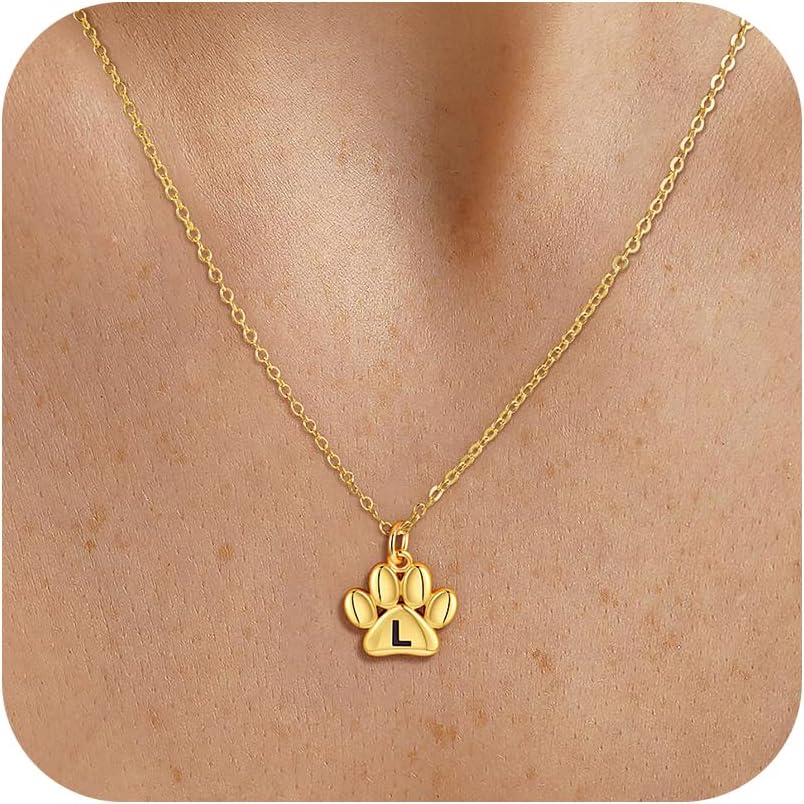 Initial Paw Necklaces for Women, Dainty 14k Gold Plated Heart Necklace Initial A-Z Mothers Day Dog Mom Gifts Birthday Gift for Dog lover Cat Pet