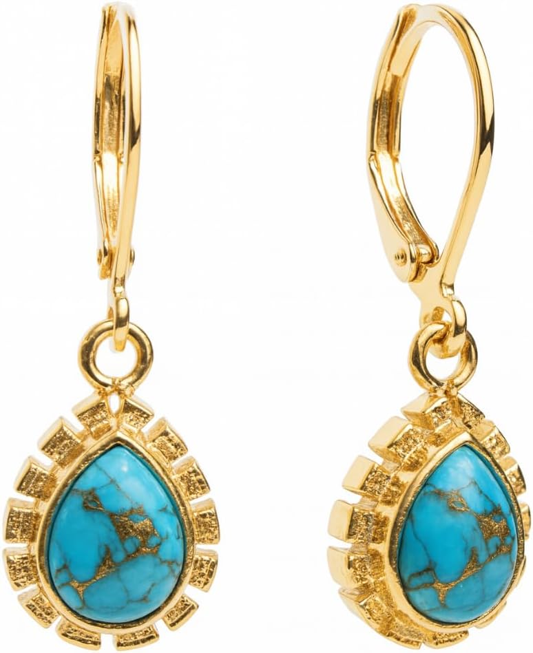 Gempires Gemstone Sunburst Drop Earrings for Women Handmade Gold-Plated Jewelry Dainty Leverback Earrings Minimalist Everyday Style Elegant Gift for Her