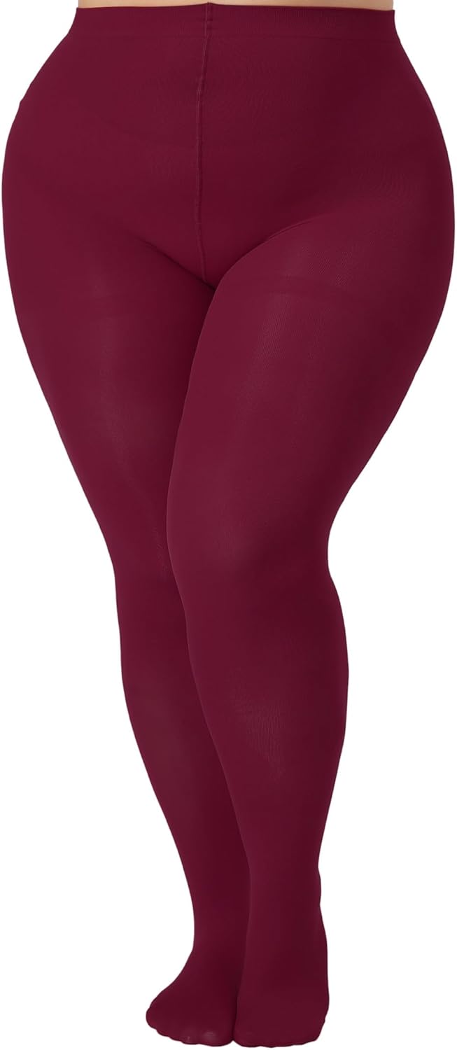 MERYLURE 240D Plus Size Tights for Women Opaque Control Top Pantyhose Ultra Soft High Waist Solid Color Footed Stockings