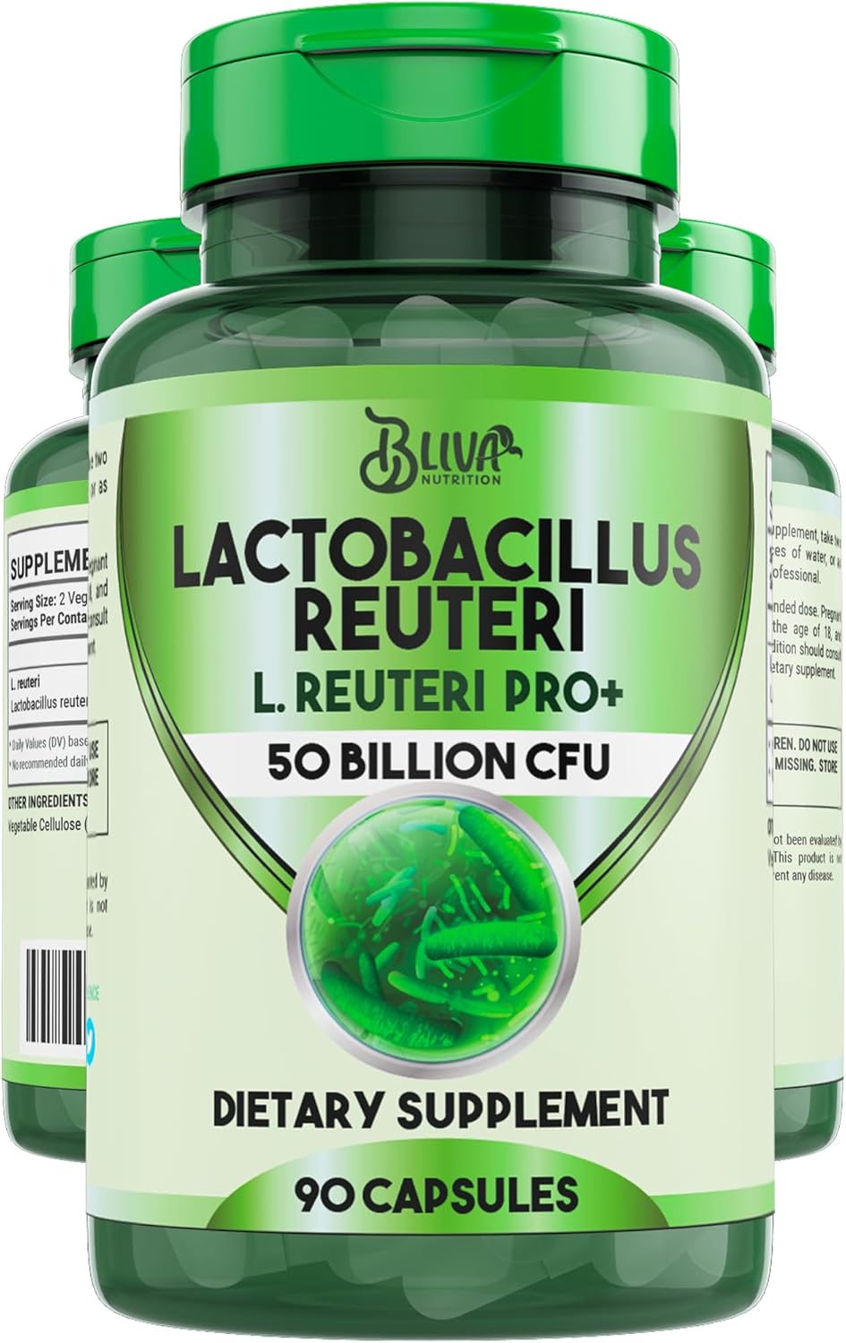BLIVA Lactobacillus Reuteri Capsules – L Reuteri - 50 Billion CFU per Serving - Highest CFU Count L Reuteri Supplement - 90 Capsules