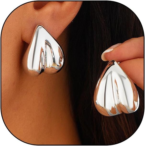 Chunky Heart Earrings for Women Dainty 14K Gold Heart Drop Earrings Hypoallergenic Puffy Love Huggie Hoop Earrings Jewelry Presents for Her