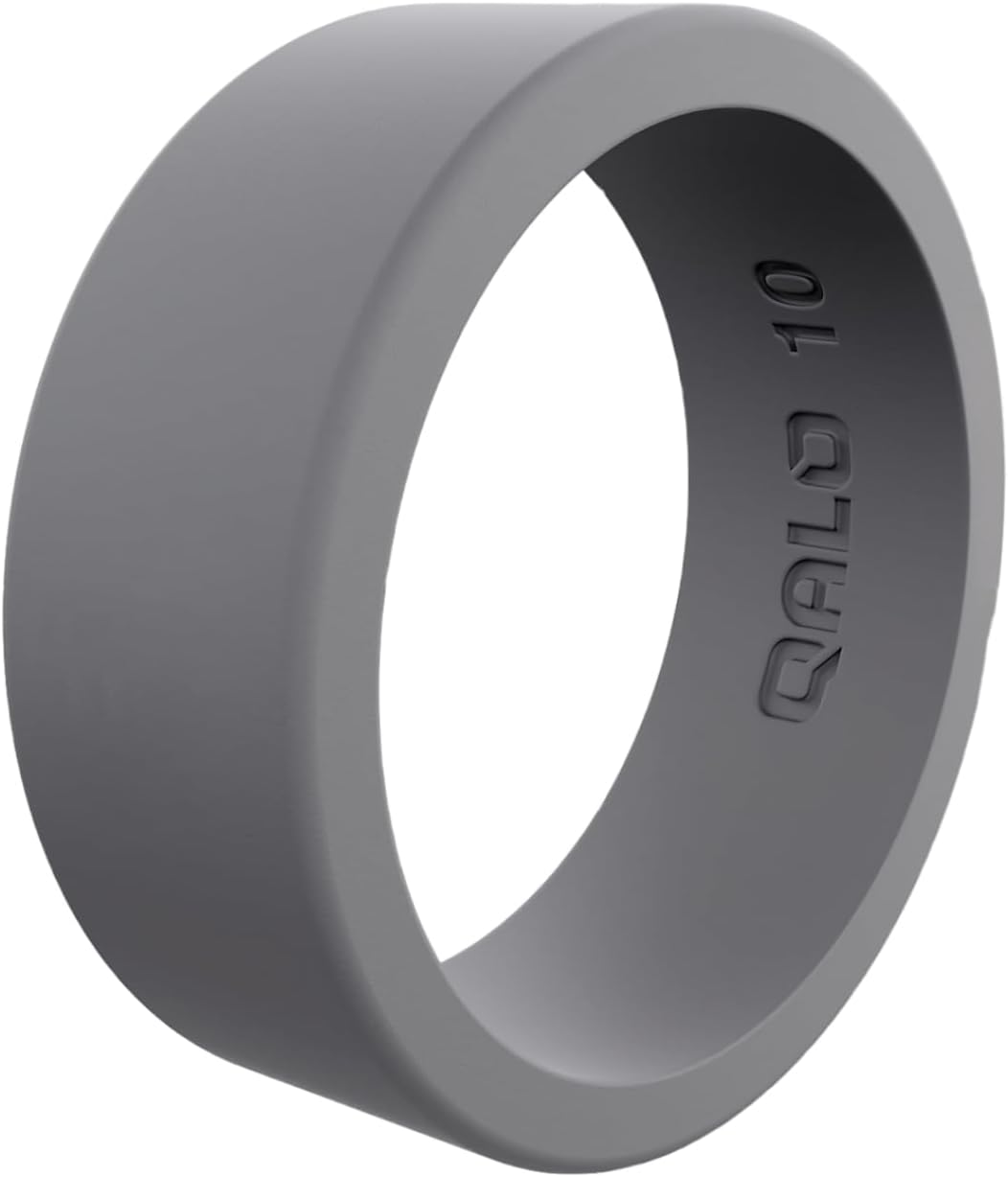 QALO Men's Silicone Wedding Band - 8mm x 2mm - Classic & Step Edge Mens Silicone Wedding Ring - Breathable Comfort Fit Rubber Rings Men - Durable Engagement Rings for Him