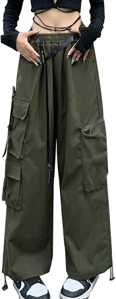 Hewlshawn Women's Cargo Pants Gothic Baggy Wide Leg Trousers Harajuku Y2k High Waisted Pants Streetwear