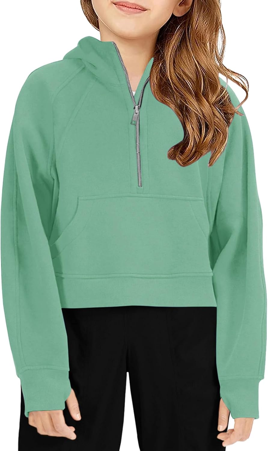Girls' Hoodies Sweatshirts Half Zipper Pullover Crop Tops for Teen Girls Long Sleeve Sweater Thumb Hole