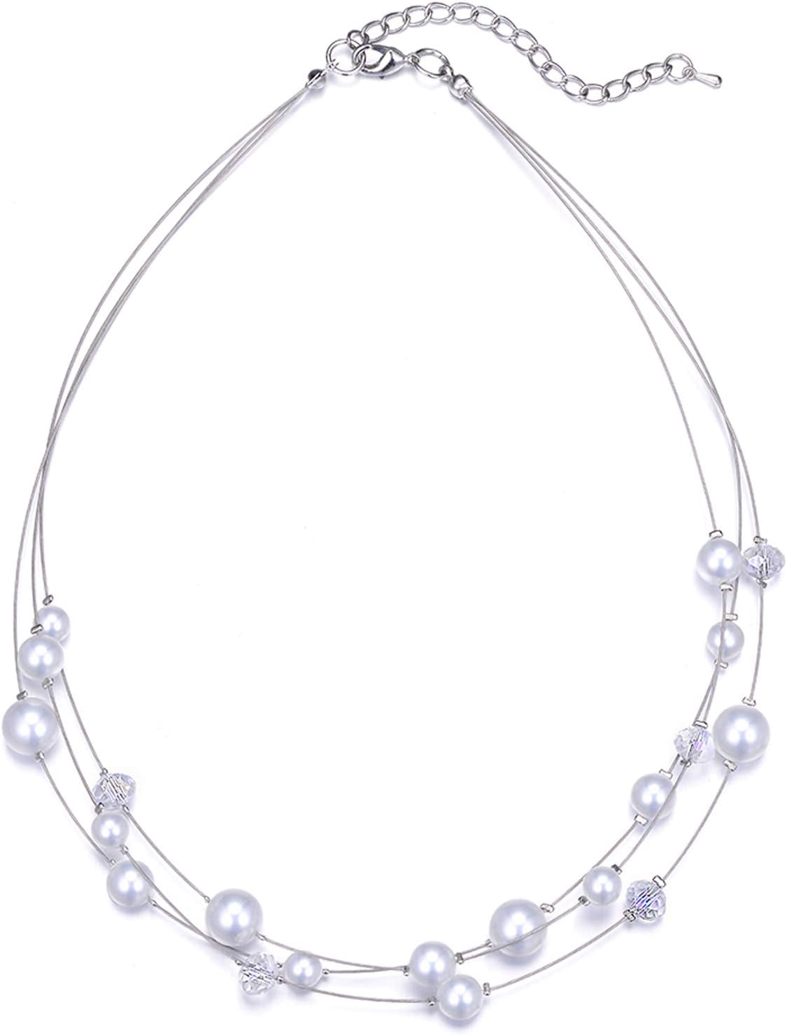 PEARL&CLUB Crystal Layered Statement Necklace For Women - Choker Necklace with Chunky Silver Chain, Birthday Gifts For Women