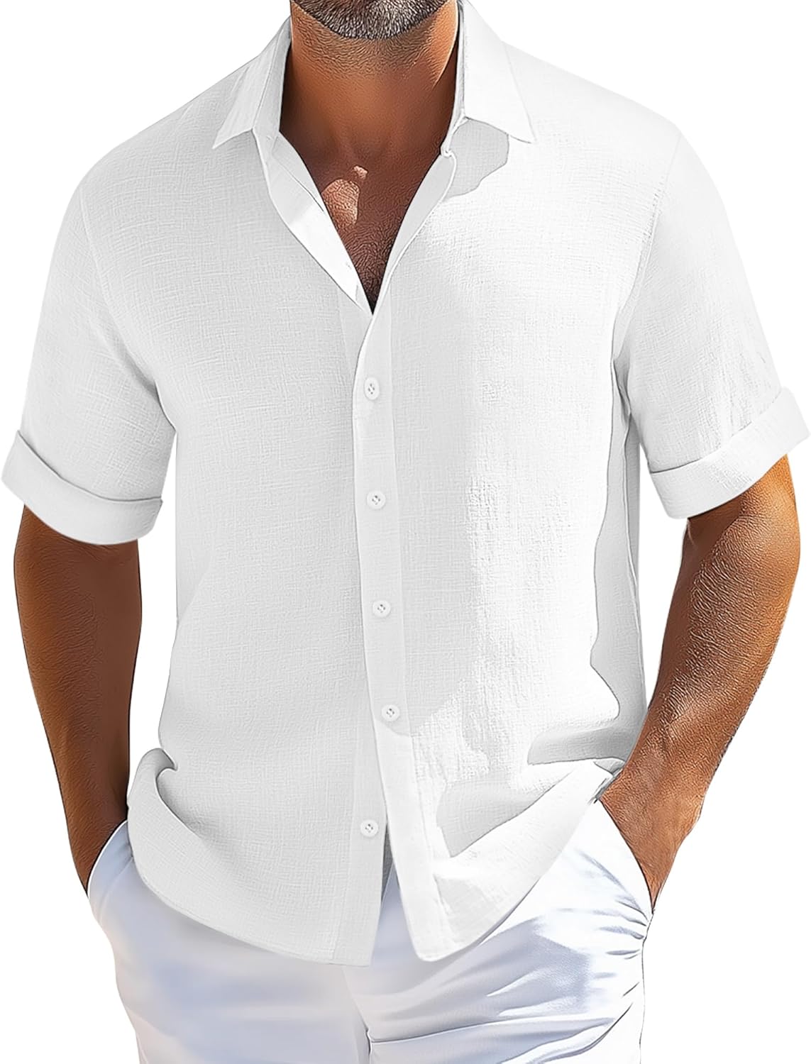 Men's Linen Shirts, Summer Short Sleeve Casual Beach Big & Tall Regular Lightweight Button Down Tops Vacation