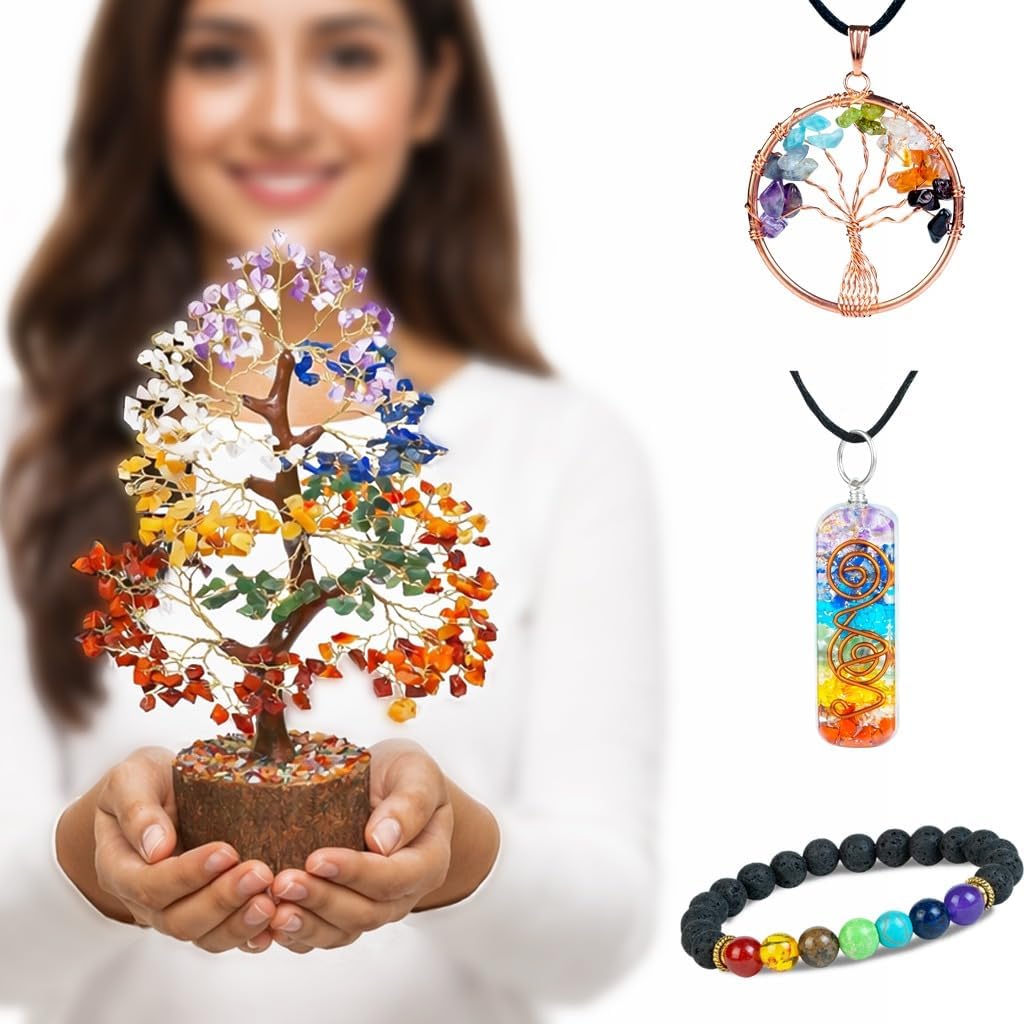 - 🌈 7 Chakra Crystal Tree of Life Set – Complete Spiritual Decor : This handmade seven chakra tree comes with 2 chakra pendants and 1 healing crystal bracelet, making it a unique & meaningful gift set. Each crystal tree is intricately wired with crystals and healing stones representing all seven chakras—ideal for aligning energy & enhancing harmony in your space. Whether you use it as chakra decor, tree of life decor or spiritual decor, it brings balance, beauty, and serenity to any environment.