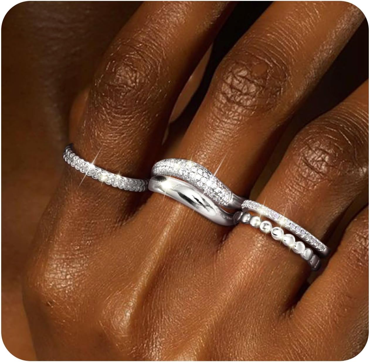 Florideco Stackable Rings for Women Non Tarnish Dainty 14K Gold Plated Stacking Cubic Zirconia Thumb Ring Set Trendy Statement Chunky Band Rings Promise Engagement Rings Size 6-10