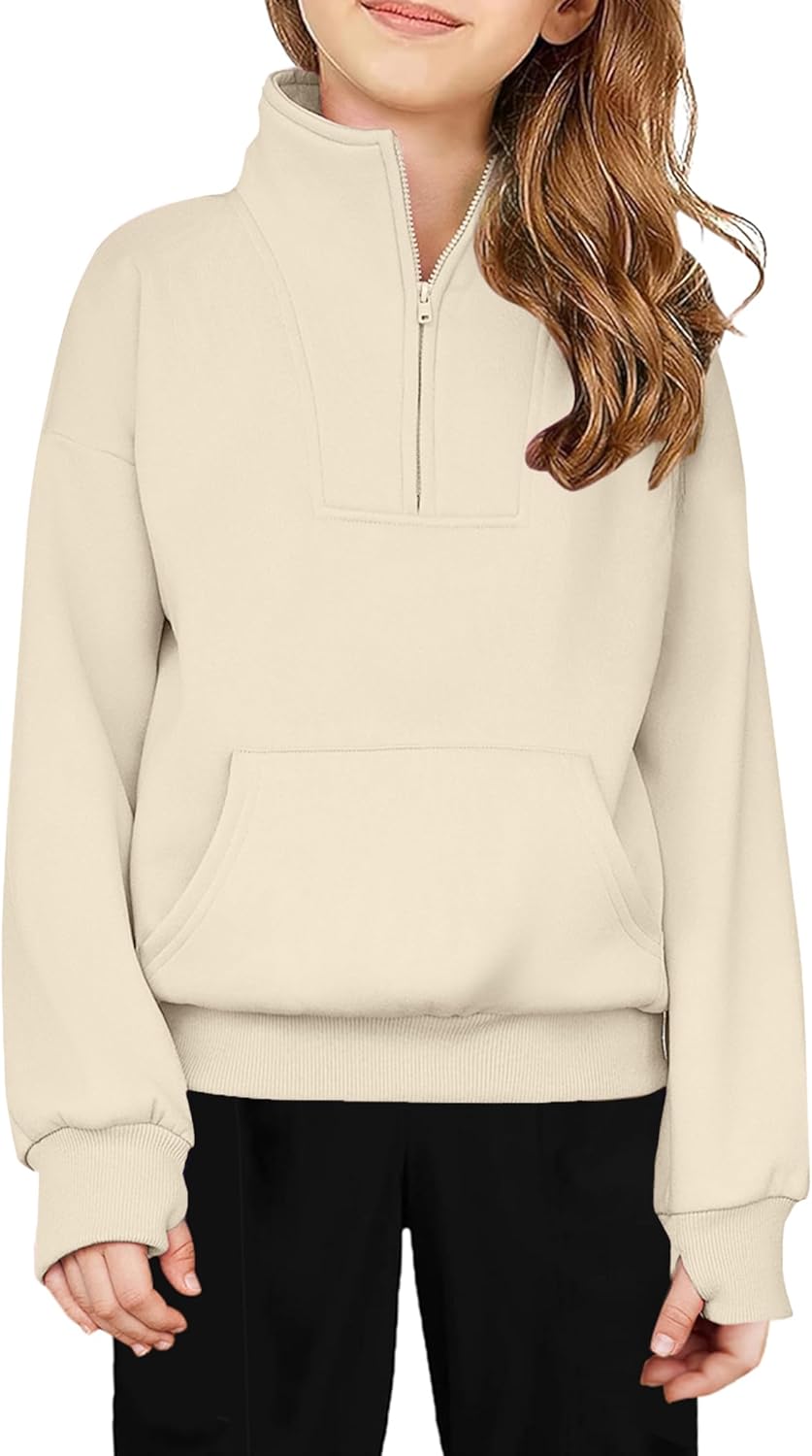 Arshiner Girls Half Zip Sweatshirt Fleece Quarter Zip Pullover Sweatshirts Fall Clothes for Teen Girls Thumb Hole