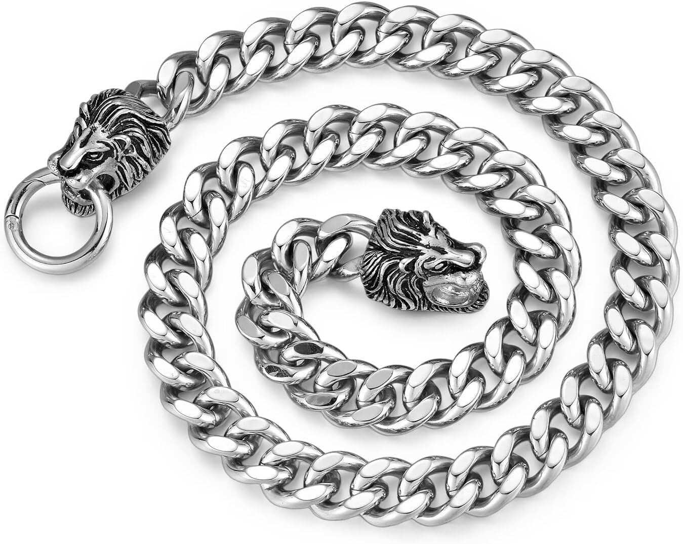 Masculine Heavy Miama Cuban Link Chain Pendant Necklace for men, Vintage Wolf Head/King Lion Head Spring Ring Clasp, Punk Rock