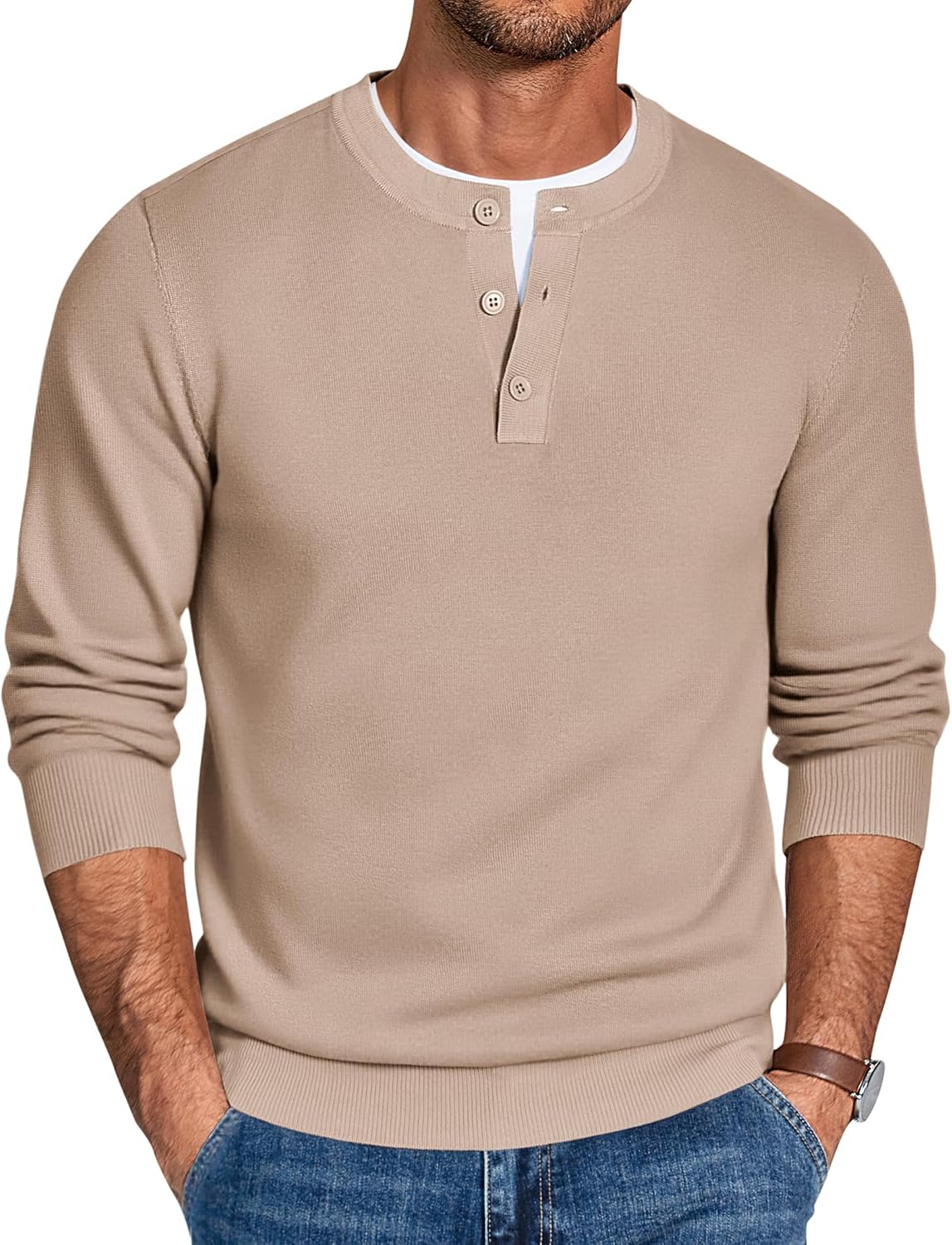 COOFANDY Mens Henley Sweater Long Sleeve Quarter Button Sweaters Casual Knit Pullover Sweater