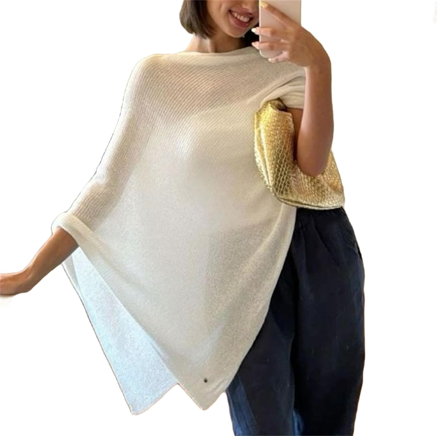 Raruxxin Women Sheer Poncho Top Sexy Y2k Sheer Crochet Off Shoulder Asymmetric Loose Knit Shrug Shawl Summer Beach Cover Ups