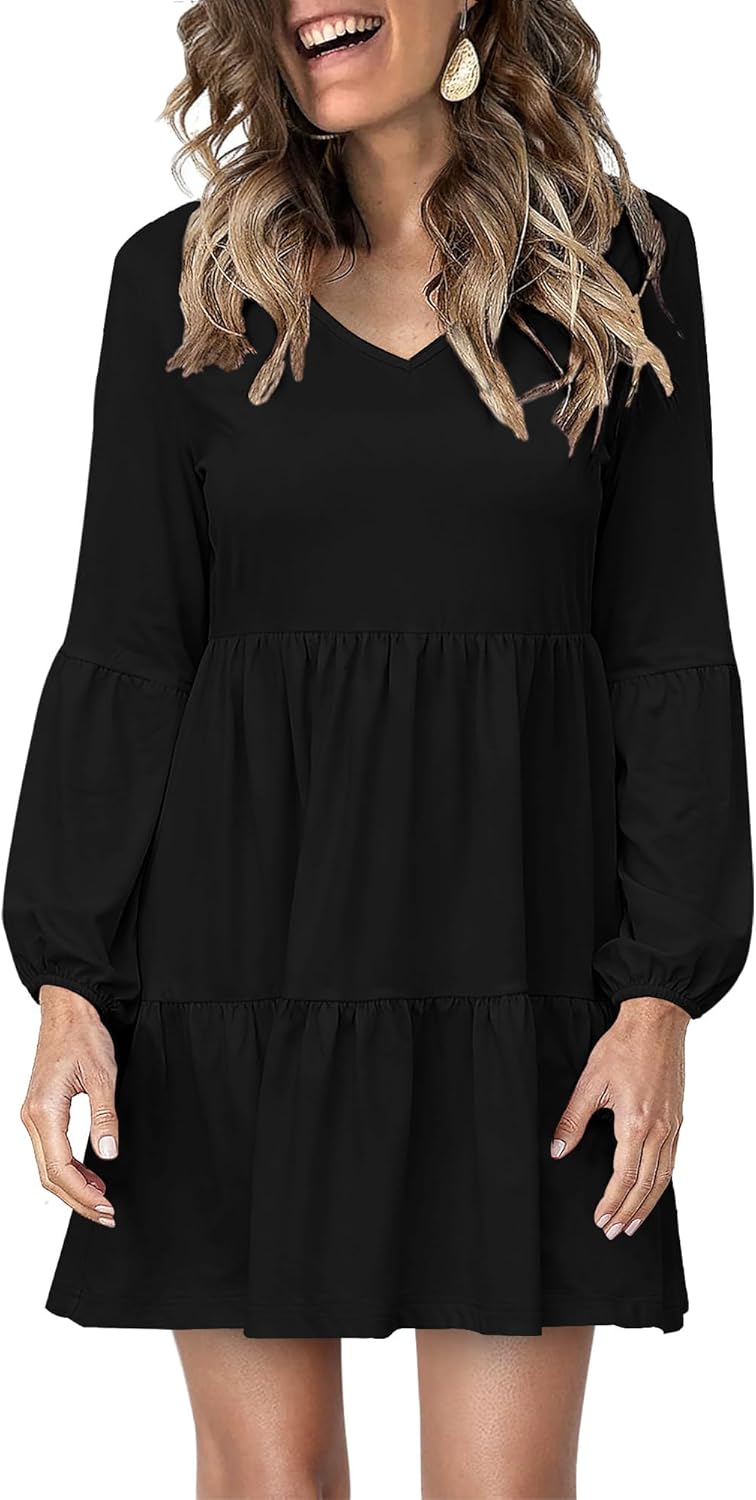 Dresses for Women Casual Long Sleeve V Neck Flowy Swing Tunic Dress Fall Outfits 2025