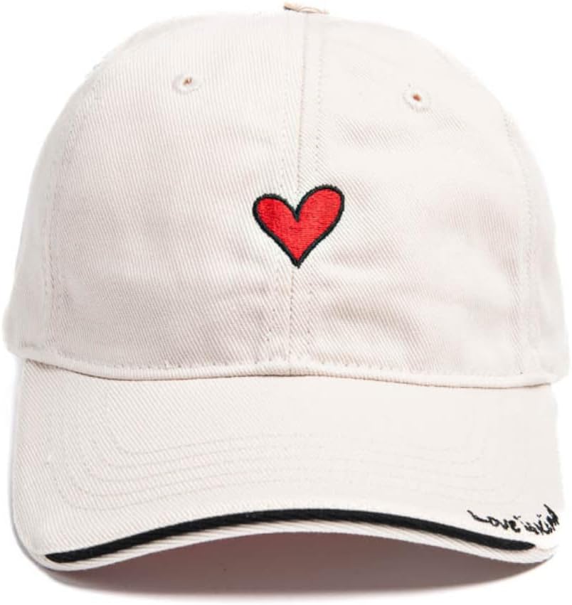 Heart Embroidery Baseball Hat – Adjustable Cap with 'Love is Kind’' Embroidery on The Brim, Eco-Friendly, Baseball Cap with Sun Protection 50+, Casual Everyday Wear, Beige