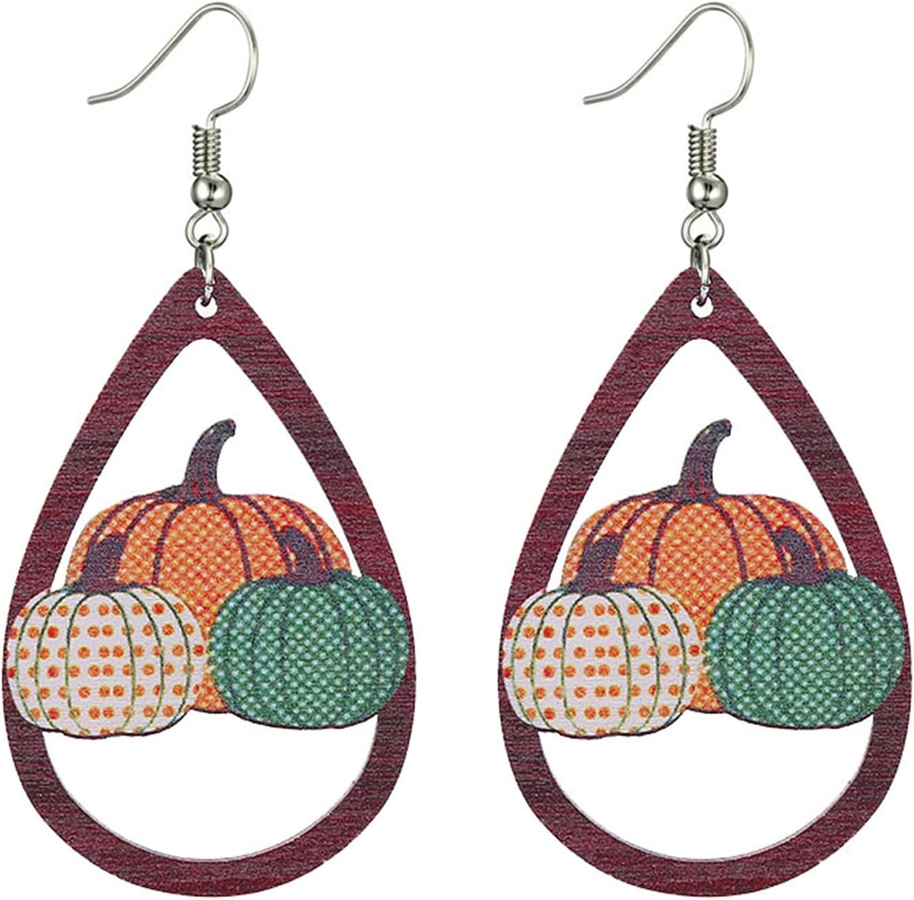 Thanksgiving Earrings for Women Unique Handmade Cute Colorful Wooden Autumn Turkey Pumpkin Maple Leaf Dangling Drop Fall Earrings for Women Thanksgiving Fall Holiday Jewelry Gifts