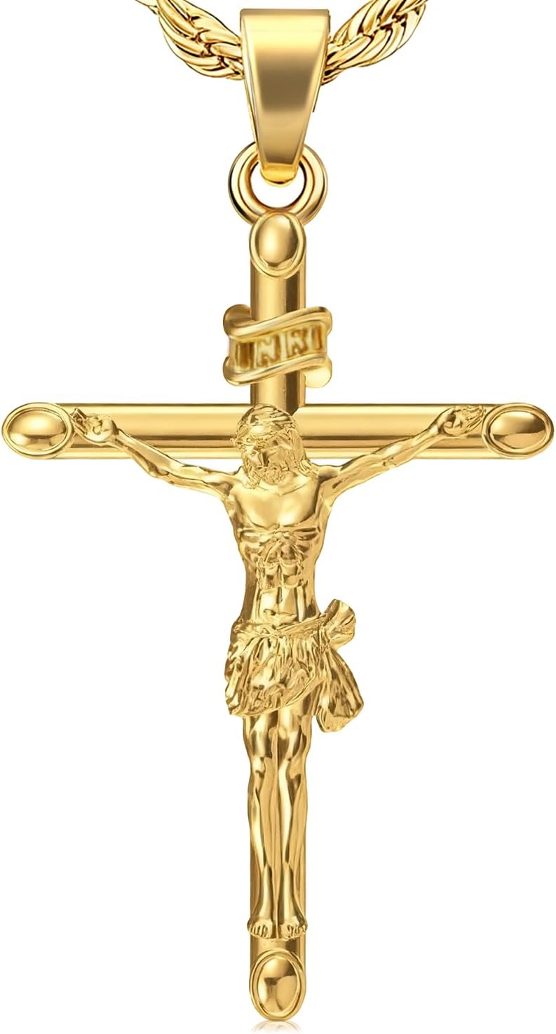 14K Gold Cross Necklaces Pendant for Men & Women, Solid Crucifix Cross Jewelry Charms for Husband, Wife Thin, Gender-Inclusive Cross Necklace Charm (B)