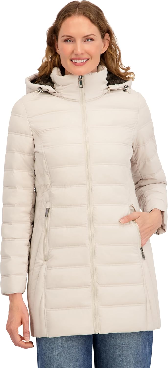 Nautica Women's Stretch Puffer Jacket- Faux Fur Lined Hood Wind & Water-resistant Winter Coat