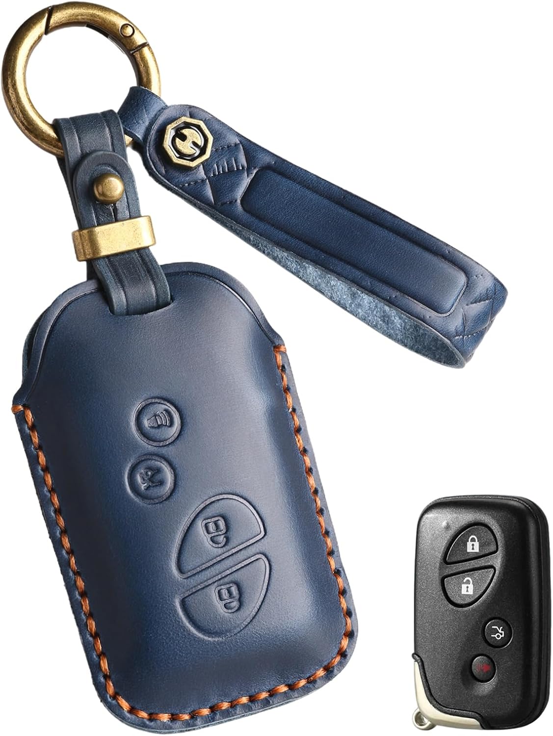 Key Fob Cover for Lexus Leather Key Case Keychain for Lexus RX350 GX460 CT200H IS350 IS250 LS460 GS350 Car Key Holder (Blue)