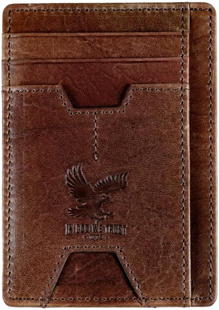 Mens RFID Blocking Leather Slim Card Case Wallet with Easy Access ID windows, Cash & Card Slots, Crafted with Premium Top Grain Leather Ideal for Travel or Everyday Use (Wilderness Eagle Brown)
