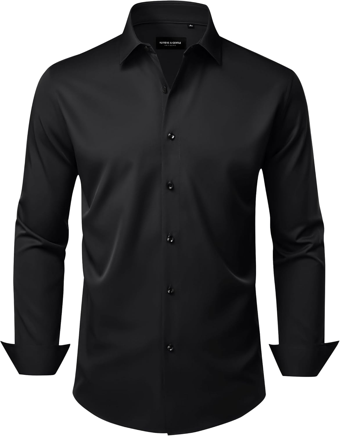 Alimens & Gentle Men's Dress Shirts Wrinkle Free Stretch Solid Long Sleeve Button Down Shirt Wedding Dating