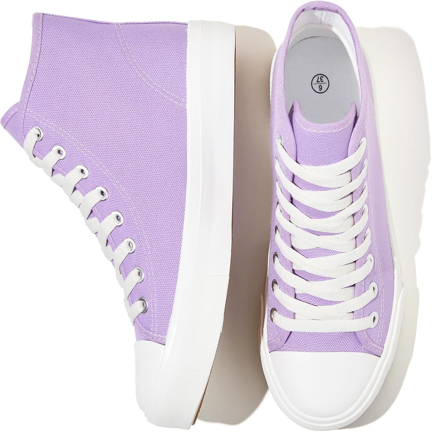 Uoidru High Top Sneakers for Women Canvas Shoes White Canvas High Tops Women Casual Shoes Lace Up Fashion Sneakers