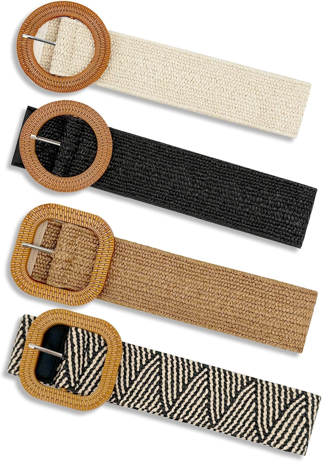 2/4 Pack Straw Woven Elastic Stretchy Waist Belts for Women, Fashion Boho Waist Belt Rattan Raffia Ladies Belts