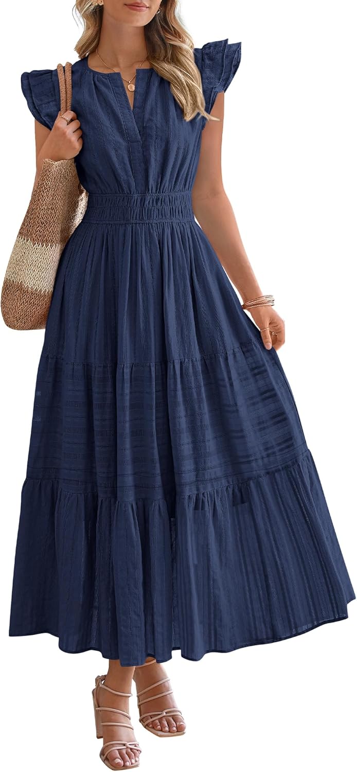 BTFBM Womens Summer Maxi Dress 2026 Spring Boho Vacation Ruffle Flutter Short Sleeve A Line Tiered Flowy Dresses Pockets