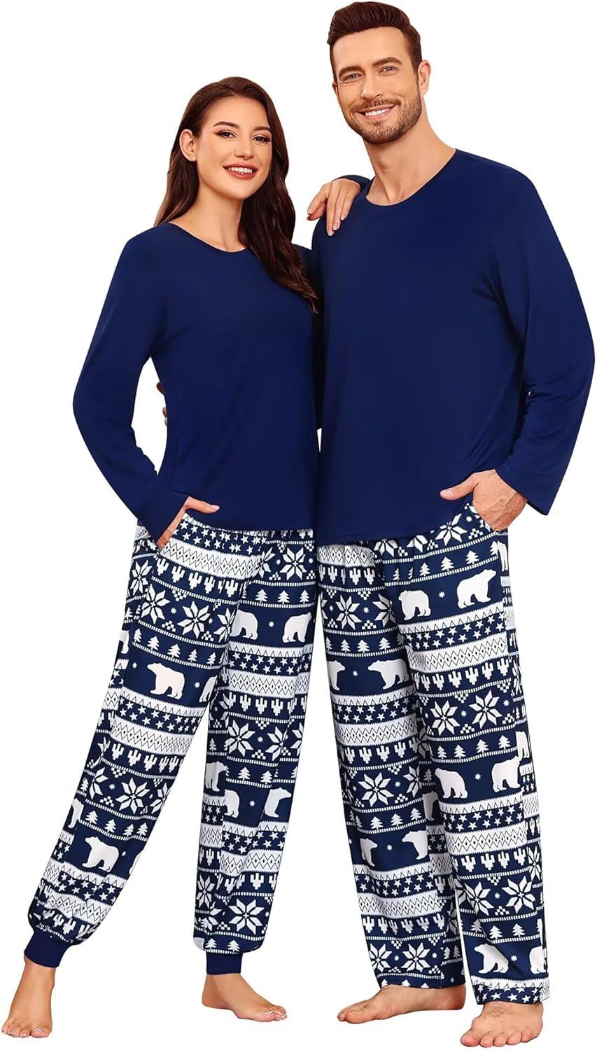 YOZLY Christmas Pajamas Couples Matching Pajama Set Buffalo Plaid Pajama Pants with Pockets X-mas Pjs for Couples&Family