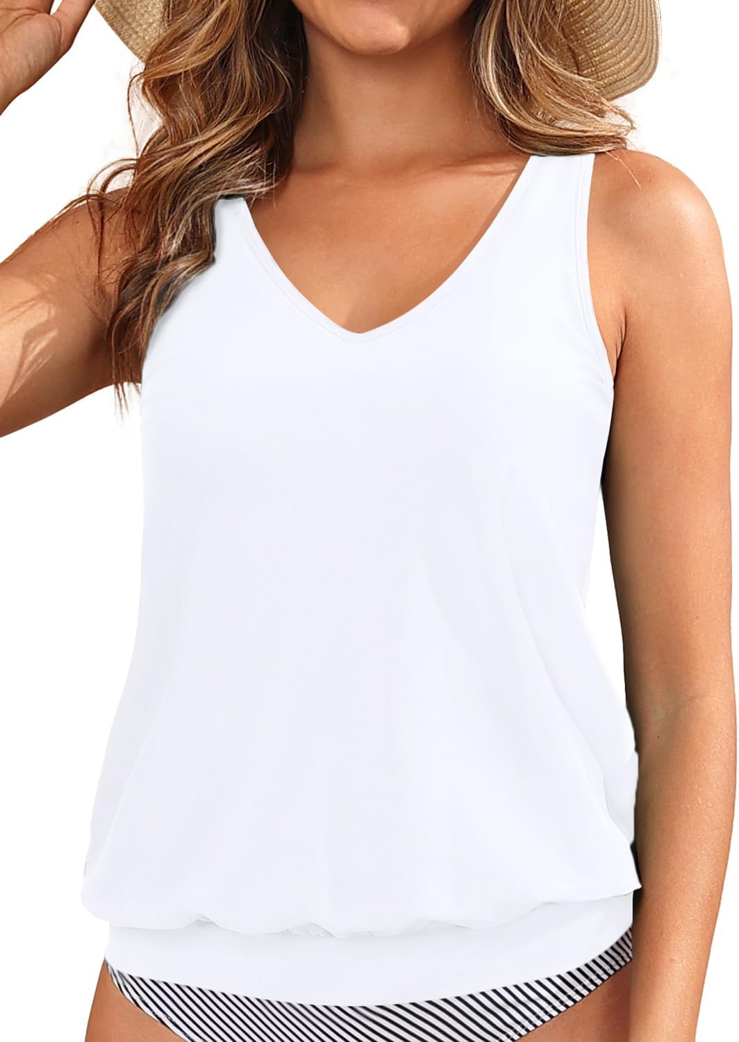 Blouson Tankini Tops for Women - Loose Fit Swim Top Only No Bottom Bathing Suit Modest Swimsuit Top 2025
