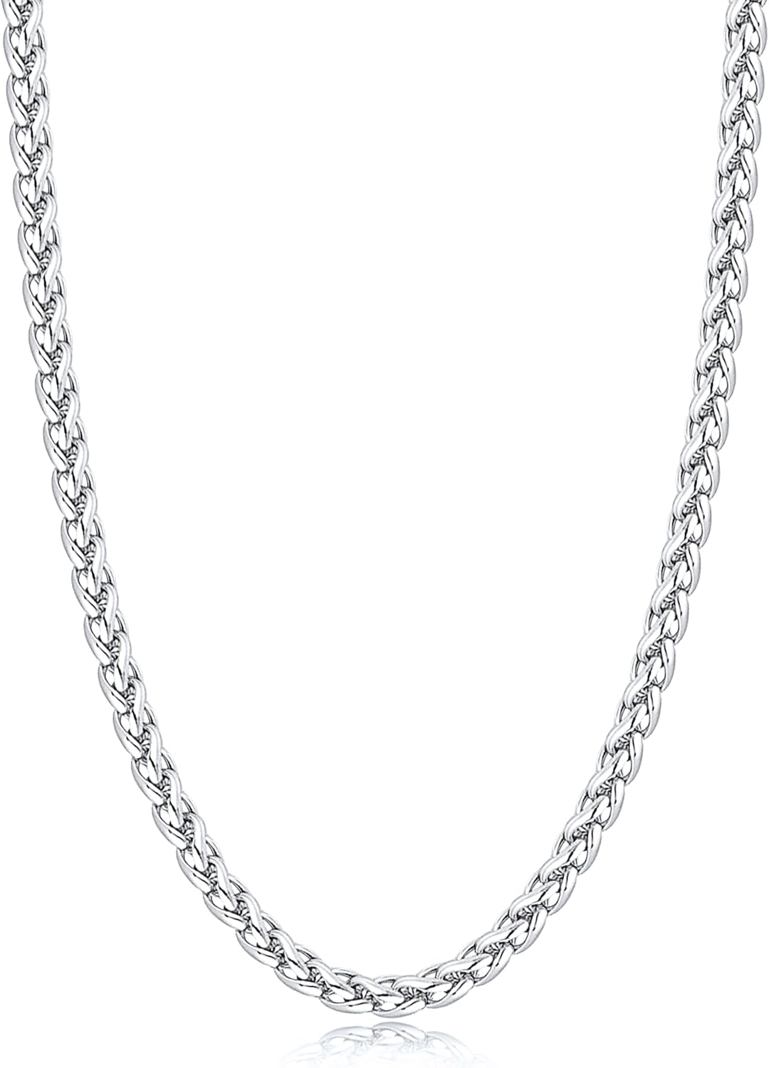Jewlpire 4mm Wheat Chain Necklace for Men, Silver Tone/Black/14K Gold Plated Stainless Steel Necklace Chain, Mens Chains Necklaces 16 18 20 22 24 26 Inch