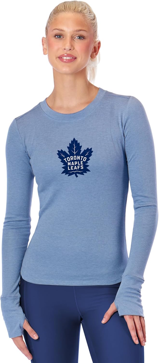 CERTO NHL Women's Long Sleeve Bodycon Shirt, Slim Fit Crewneck Tee, Officially Licensed Fan Apparel
