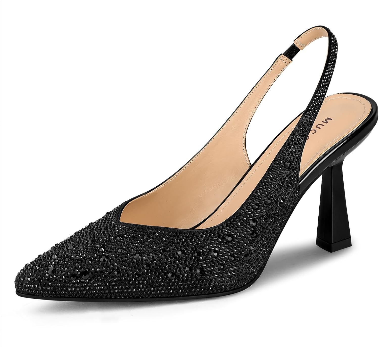 MUCCCUTE Kitten Heels for Women Slingback Heels Pointed Toe Pumps Rhinestones Pearls Stiletto Sparkly Bridal Sandals for Wedding Prom Dating