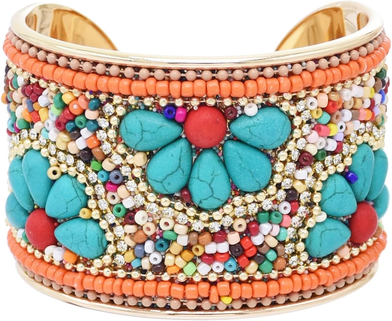 Bohemian Turquoise Stone Bracelets for Women Stackable Multilayer Beaded Bracelet Handmade Wide Cuff Bangle Trendy Boho Jewelry for Best Friends Dainty Hippie Charm Bracelet