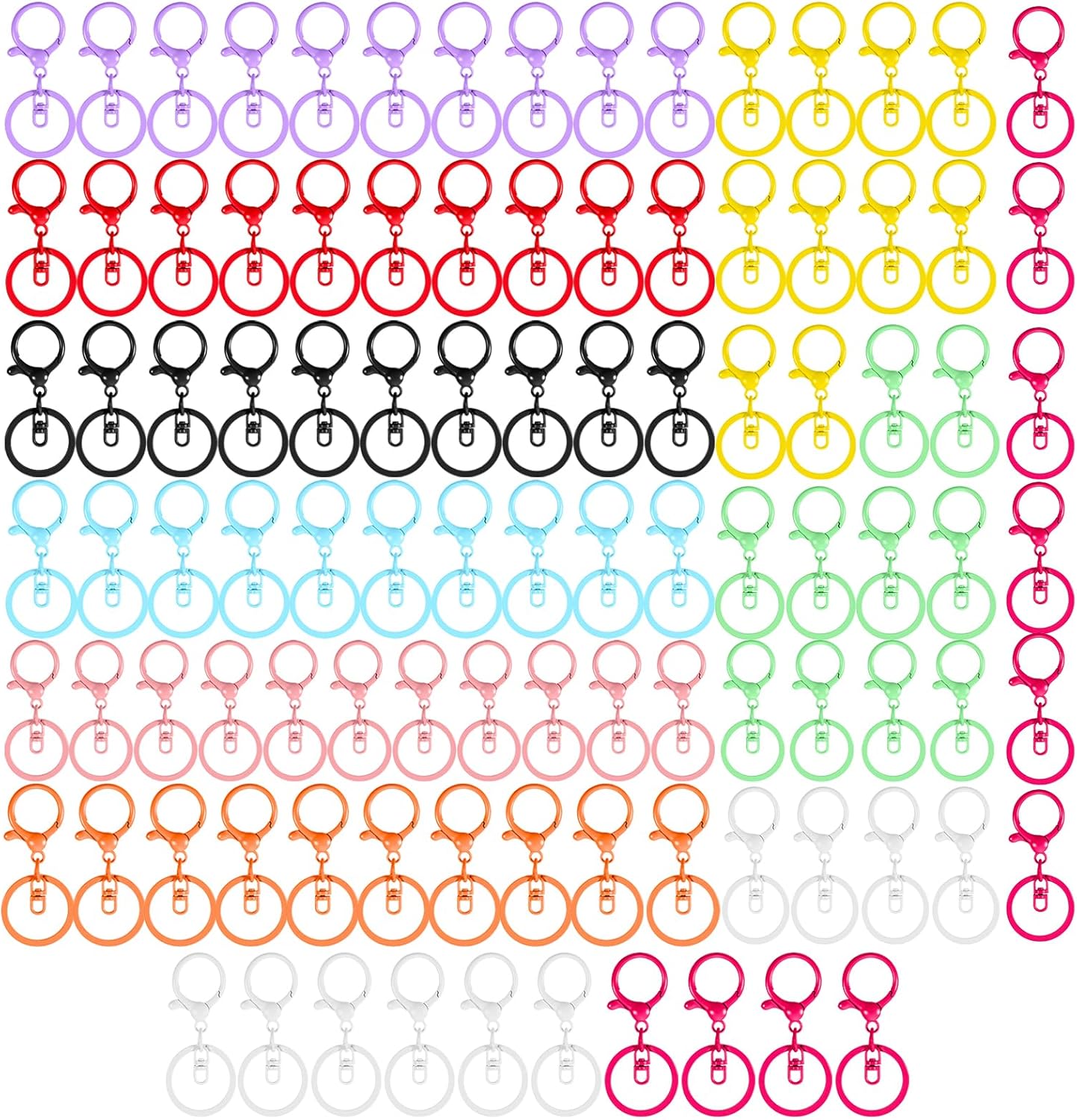 - 【What You Get】Comes with 100pcs Larger Lobster Claw Clasp Keychain with Flat Split Keychain Ring and Jump Rings.10 colors,black, purple, light pink, rose red, yellow, white, red, royal blue, orange, green,3pcs for each color.Sufficient quantity to meet your daily DIY needs.