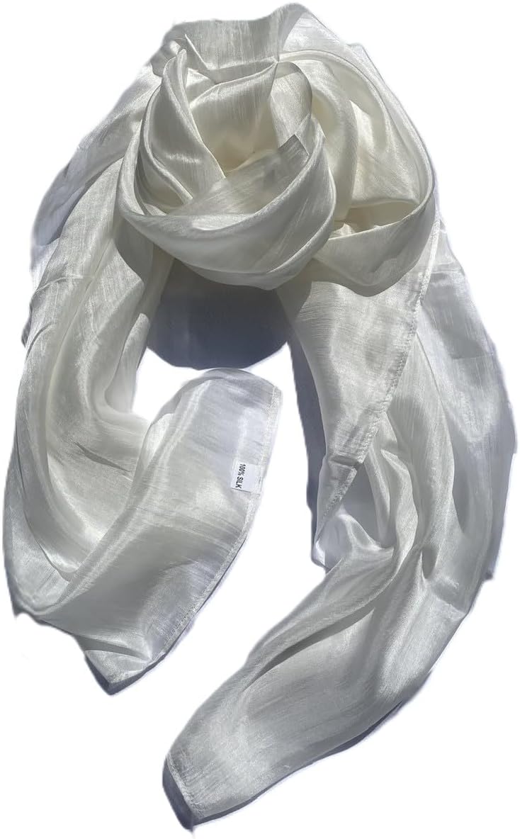 100% Pure White Silk Scarf, Organic Women's Lightweight Long Mulberry Shawl, Hypoallergenic Solid Thin White Wrap Handmade in Vietnam, Gift for Mom and Her.