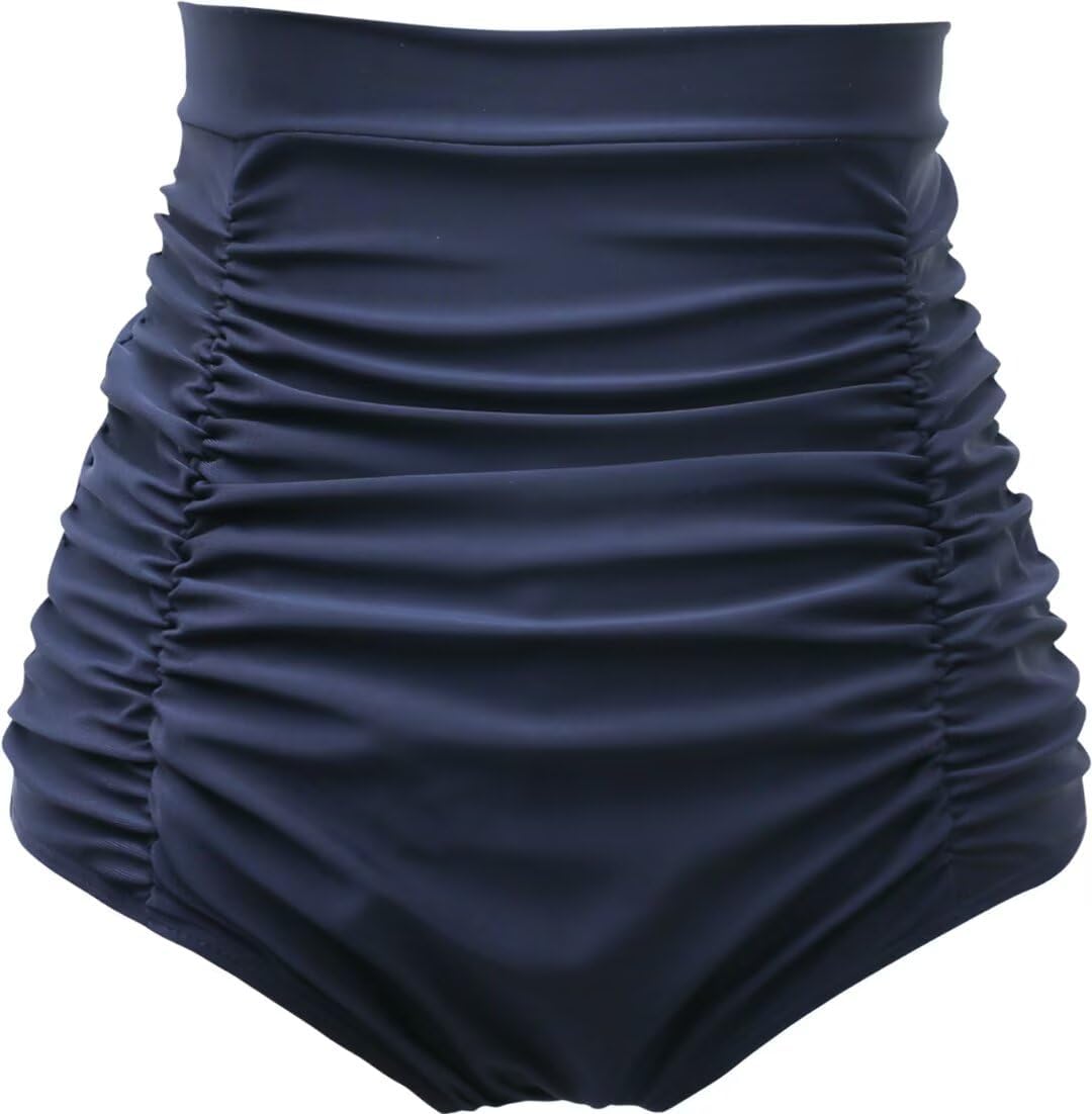 COCOPEAR Women's Ruched High Waisted Bikini Bottom Retro Vintage Swim Short Tankinis