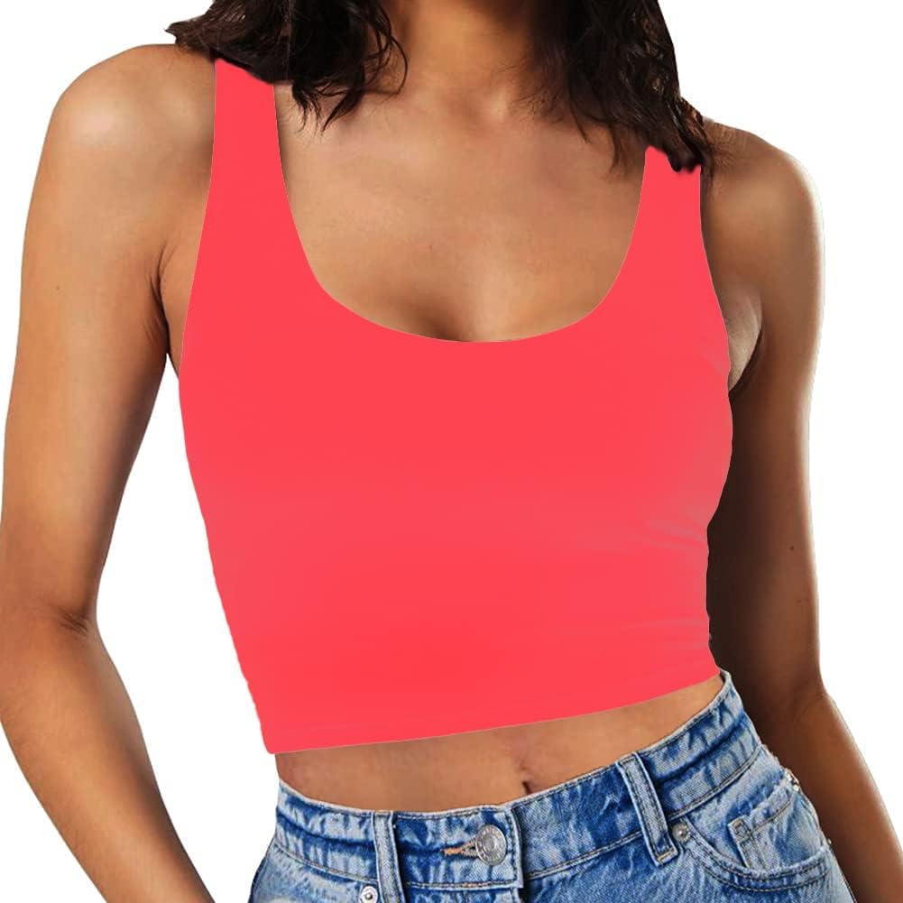 Women’s Sexy Sleeveless Crop Tops Double Layer Scoop Neck Cropped Tank Top
