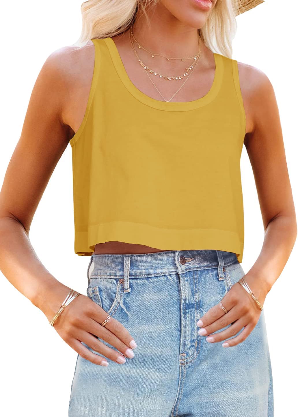 Aoysky Womens Cotton Crop Tops Casual Loose Tank Top Sleeveless Basic Cropped Athletic Yoga Workout Shirt