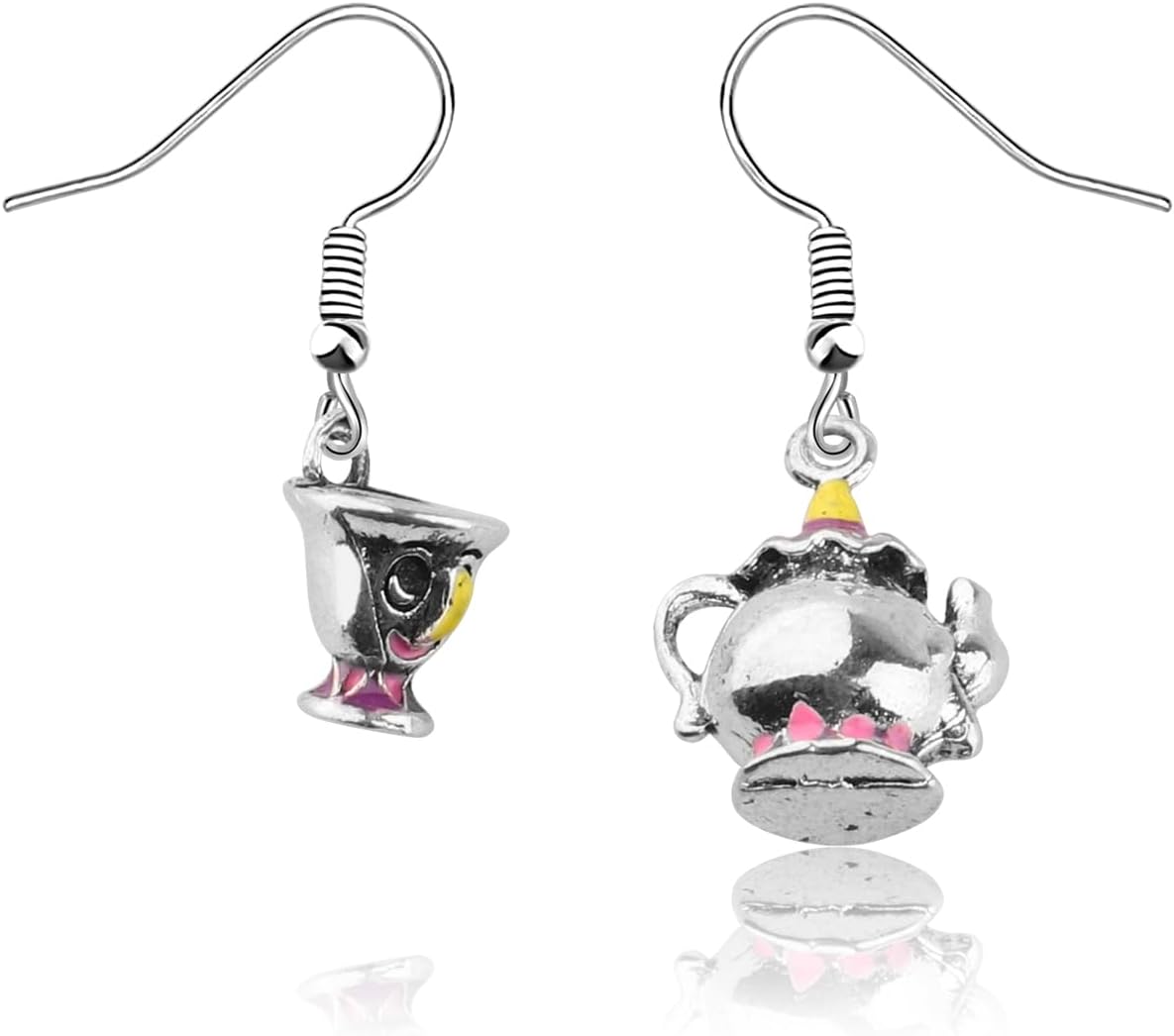 CENWA Chip and Mrs. Potts Cartoon Animal Earrings Gift for Movie Fan